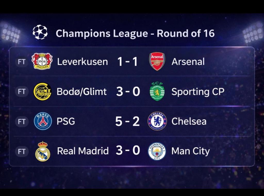 Tonight’s fixtures in the UEFA Champions League Round of 16 gave fans exactly what this competition is famous for — big performances, shocking scorelines, and tactical battles that could shape the rest of the tournament.